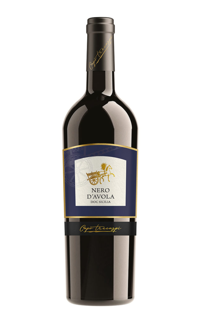 Nero D’avola Sicilia DOC dal colore rosso rubino intenso ha un profumo intensamente fruttato con sentori di frutta rossa (ciliegie e more), fragrante, minerale e speziato. Il sapore presenta un ottimo equilibrio di tannini e acidità, un gusto profondo di grande spessore, struttura ed elevata morbidezza. Intenso e persistente, adatto all’invecchiamento.