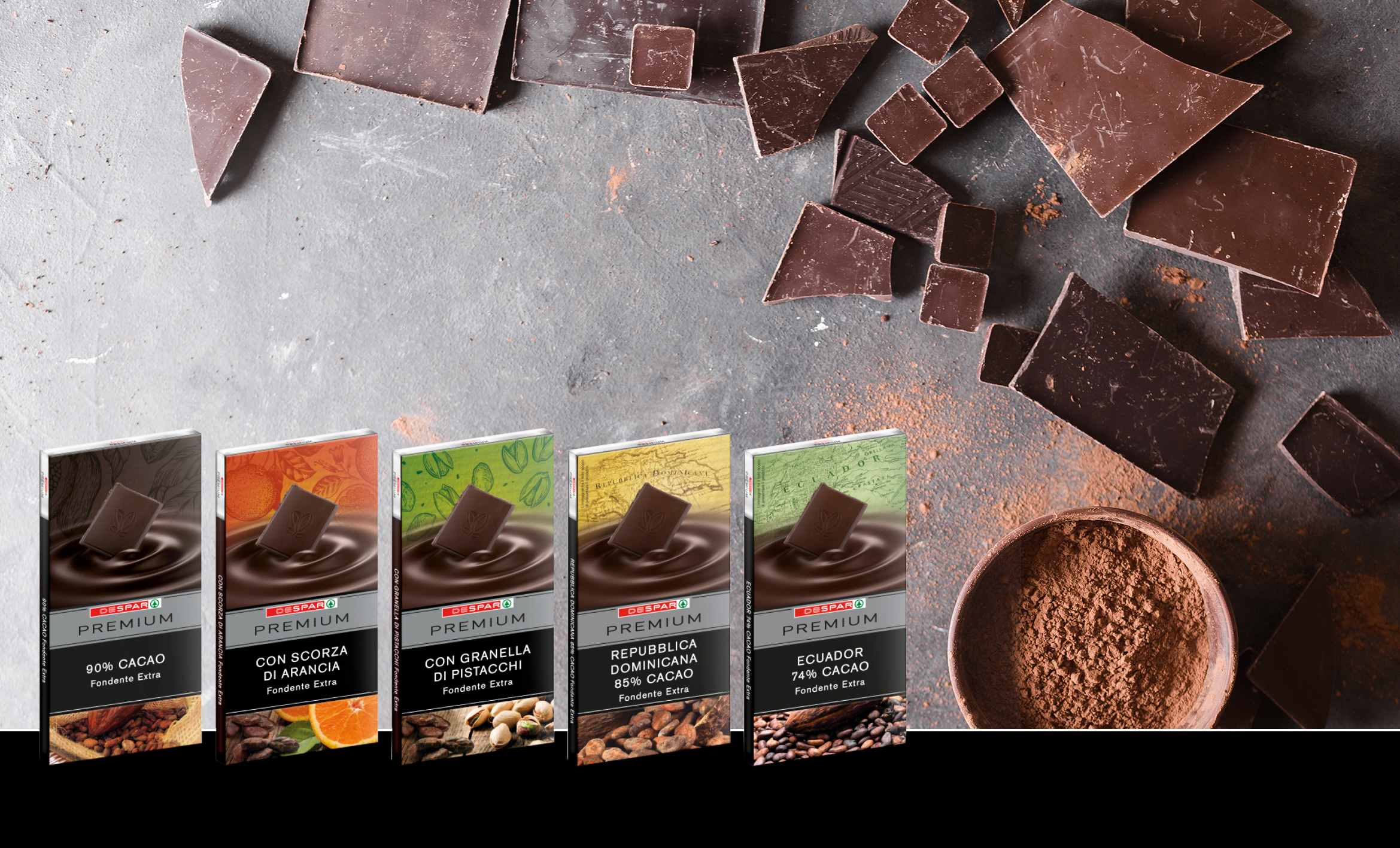 Il cioccolato extra fondente 90% cacao, racchiude in sé tutti gli aromi del cacao puro, dedicato ai veri intenditori del cioccolato. Per i più avventurosi, la linea Despar Premium propone due fondenti arricchiti da una croccante granella di pistacchi o da delle dolci scorze di arancia candite. Infine, per chi ama i sapori più classici e ricercati, Despar Premium propone due tavolette di cioccolato provenienti dalle fave di cacao di Ecuador e Repubblica Dominicana. Il cioccolato dell’Ecuador, con il 74% di cacao, presenta note floreali e fruttate mantenendo un sapore estremamente delicato. Il fondente dalla Repubblica Dominicana, invece, contiene ben il 74% di cacao e presenta un sapore intenso e pungente, ideale per chi vuole assaporare il gusto più puro del cioccolato.